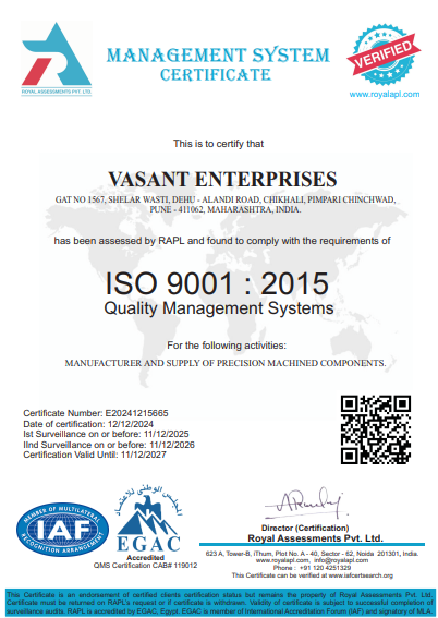 Vasant Enterprises Was established in the year of 2011 with a view to provide precision machined components , After having 10 years experience in the machining field. In a short span of seven years the company has established customers not only in India but overseas also.